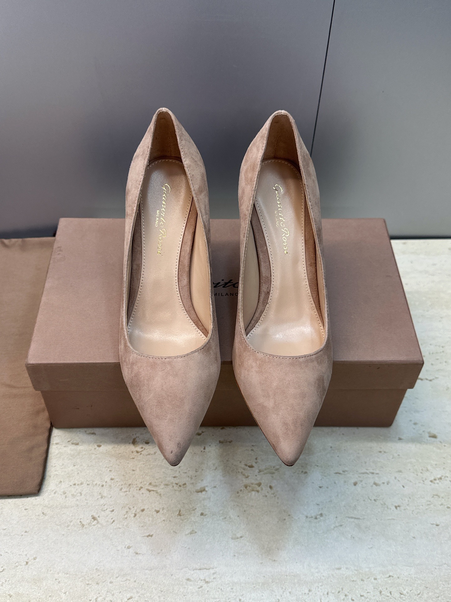 Tämä VAR-tyyppi on AAAAA 1: 1 laatu (erinomainen). Käytetyt materiaalit ovat identtisiä alkuperäisiin. Gianvito Rossi tavaramerkki merkit ovat erotettavissa sen aito. Kuvat ottaa todellisen kengät, mitä saat on 100% sama kuvia.